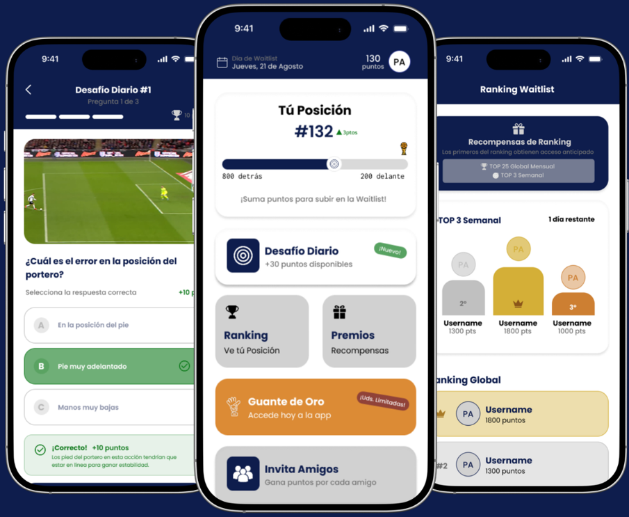 Completa los desafíos diarios para ganar puntos y subir posiciones en el ranking de la Waitlist. Los primeros en el ranking, accederán al GKTester Program y conseguirán acceso anticipado a la app.